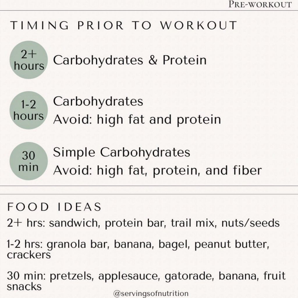 Carbohydrates: gives your body immediate energy before a workout and will replenish the body after