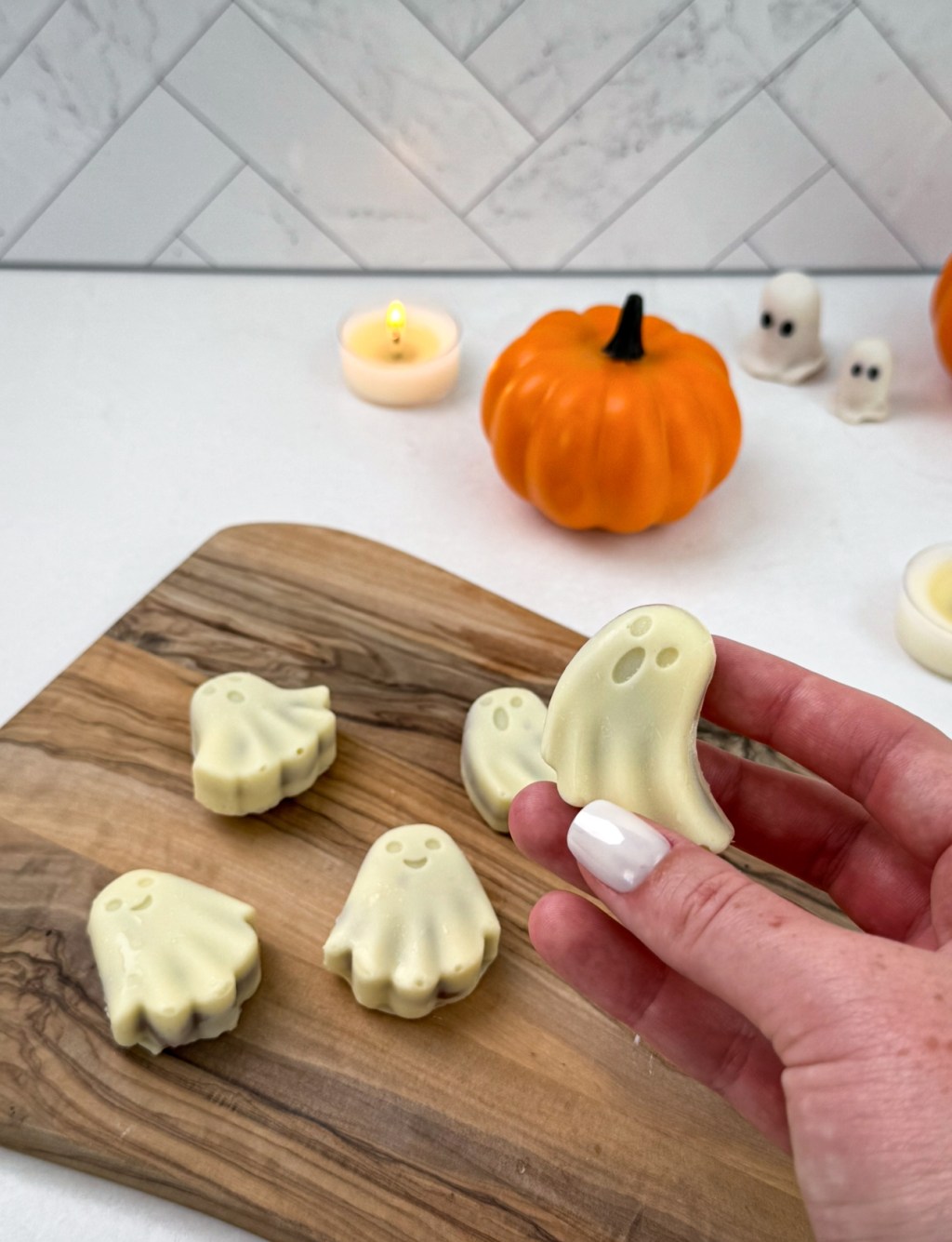 Freeze for at least 30 minutes, or until completely set. Once solid, pop your little ghosts out of the molds and get ready to snack!